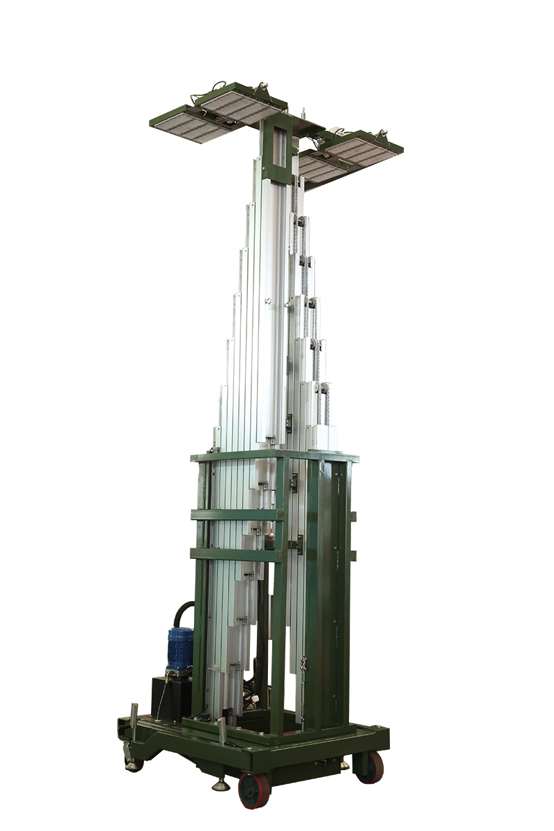 1.設(shè)備底盤采用高強(qiáng)度錳鋼管加工焊接制作,保證設(shè)備在升降過程中的穩(wěn)定性。 2.舉升機(jī)構(gòu)采用高強(qiáng)度鋁合金制作(渤海鋁業(yè)),具有良好的抗風(fēng)性能。 3.8個 LED 燈具,照明亮度高,覆蓋范圍廣,照明距離遠(yuǎn)。 4.采用手動電動雙啟動發(fā)電機(jī), 使用于高原或低溫環(huán)境。 5.設(shè)有停電情況下的應(yīng)急下降裝置。 6.支腿: 設(shè)備獨(dú)特的安全支腿力學(xué)設(shè)計, 使設(shè)備支撐面積大,安全系數(shù)增加。 7.行程開關(guān): 設(shè)備設(shè)有行程開關(guān)、油缸活塞限位、緊急停止按鈕等多套安全保護(hù)措施, 8.液壓系統(tǒng): 裝有進(jìn)口液壓動力單元,運(yùn)行安全可靠, 9.密封: 設(shè)備采用進(jìn)口密封圈, 高品質(zhì)密封杜絕漏油的隱患。 10.電器:揚(yáng)天特殊訂制集成電控箱,地面獨(dú)立操作更加穩(wěn)定,內(nèi)安裝過載保護(hù)器超過額 定電流時自動切斷電源,更好的保護(hù)發(fā)電機(jī)安全運(yùn)行,再有市電的環(huán)境工作,可接通 220V 市電切換, 實現(xiàn)長時間無間斷照明。 |